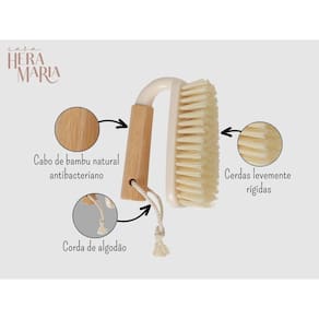 Escova de limpeza escovinha tanque multiuso com cabo de bambu Prática: para limpar a pia do banheiro, pisos, sapatos e mais Pega de bambu: a alça é confortável de segurar, protege suas mãos e dá suporte para esfregar. Com cerdas flexíveis: não danifica as superfícies. Furo passante: na hora de guardar, é só pendurar. Feita de bambu: material leve, resistente e ecologicamente correto. Características / medidasDimensões: 13 x 6,5 x 10cm l x p x a Cor: bambu e branco.Material: bambu e plástico. Conteúdo da embalagem:Contem: 01 escova de limpeza multiuso. Cuidados: Fácil de limpar: pode ser lavado na água corrente com esponja e detergente. Para evitar danos, é indicado secar a peça logo depois de lavá-la.Armazenamento: o bambu não gosta de umidade ou contato com água, por isso deve ser guardado em local seco e arejado. Acesse nossa página de vendedor para conhecer todos nossos produtos casa hera maria casaheramariadecorhomeheramariastoreheramariabanheirocozinhalavabolavanderialimpezaorganizarbambu Dúvidas:Se atente a todas as características do produto, olhe as medidas, nome da cor, não se baseie apenas nas fotos e sim não deixe de ver a descrição para evitar comprar um produto que não atenderá sua necessidade, precisando só perguntar. Aqui seu é dinheiro garantido:Compra 100% seguraSe o seu produto chegar danificado, garantimos a devolução do seu dinheiro