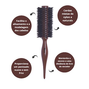 A Escova de Madeira Salon Mista Triangle 23 é um produto de alta qualidade que oferece um design exclusivo e inovador. Facilita o alisamento e a modelagem dos cabelos, enquanto suas cerdas mistas, de nylon e naturais, proporcionam um penteado suave e sem frizz. Mantenha a escova a uma distância de 5cm do secador.