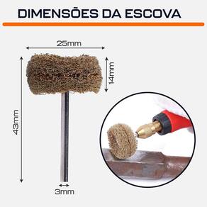 Escova de Polimento Nylon 25mm Grão 120 para Micro Retíficas Dremax - Marca: Dremax - Referência: EPN001 - Cor: Bege - Material: Fibra do nylon - Gramatura: Grão 120 grosso - Diâmetro da escova: 25mm 1 Pol. - Espessura aproximada da escova: 14mm - Diâmetro da haste: 3mm 1/8 Pol. - Comprimento: 43mm - Modelo exclusivo com 3 camadas de espessura, mas eficaz e durável que os concorrentes - Escova tipo Scotch Brite - Velocidade de trabalho recomendada: 2.000 a 12.000rpm - As escovas almofadas de polimento são usadas em polimento madeira, metal, polimento de pedra etc. , gravura, moagem, lixamento e limpeza - Ideal para limpeza, desbaste e polimento de todos os tipos de joias e metais preciosos. - Acessório indicado para joalheiros, serralheiros, armeiros, técnicos, colecionadores de moedas, arqueólogos, estudantes, etc. - Indicado para todas as marcas de micro retíficas, como Dremel, Charbs, Einhell, Black+Decker, Dremax, Mondial, Vonder, Titanium, Western, Ingco, Gamma, Wesco, etc. - : 90 dias contra defeitos de fabricação A DREMAX é a primeira e única marca brasileira dedicada exclusivamente às micro retíficas, acessórios e acoplamentos para esta indispensável ferramenta. Seja para trabalhos de precisão, artesanato, modelagem ou reparos, a DREMAX tem o produto certo para você.