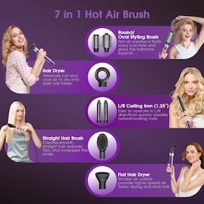 Escova e secador de cabelo - [Multi Hair Styler 7 em 1] vincofy combina uma escova de pentear e um secador de cabelo em um, 7 cabeças de escova diferentes suportam alisamento, ondulação, secagem, estilo e volume. O modelador versátil com um motor de alta velocidade de 110.000 RPM proporciona um fluxo de ar potente de até 23 m/s, acelera a secagem e suaviza o frizz. Reduza o tempo de modelagem pela metade e crie mais possibilidades para o seu estilo. - [Adequado para todos os tipos de cabelo] Esta escova de secador de cabelo com uma potência máxima de 1500 watts pode ser aquecida no menor tempo possível sem muita espera. Pode combinar até 9 modos de trabalho diferentes ajustando a velocidade do ar e o botão de temperatura. Modo legal para penteados de longa duração, modo baixo para cabelos danificados e tratados, modo médio para cabelos finos e macios, modo alto para cabelos grossos e pré-secos. Você pode criar um penteado que combina com você, adequado para todas as idades e tipos de cabelo. - [Enrolador de ar automático de 3,15 cm L/F] A escova secadora com motor de alta velocidade de 110.000 rpm sopra um fluxo de ar forte e contínuo através do duto de ar no modelador de cabelo, coloque um fio de cabelo perto do modelador de cachos e ele irá enrolar, enrolar e modelar automaticamente. O modelador de cachos é projetado para diferentes direções do lado esquerdo/direito, e combina com o pincel redondo para afofar as raízes, é fácil criar cachos volumosos, suaves e naturais, mesmo para iniciantes. - [Revestimento cerâmico e livre de danos] A escova de ar quente adota revestimento de cerâmica para garantir que o calor seja distribuído uniformemente por cada fio e possui proteção contra sobretemperatura NTC que detecta automaticamente e ajusta a temperatura do ar a cada segundo para manter a temperatura abaixo de 120 °C, minimizando os danos causados pelo calor ao cabelo. 200 milhões de unidades de íons negativos são liberados durante o processo de sopro, o que ajuda a suavizar a secura do cabelo e alcançar um efeito de volume, para que você possa obter um penteado de salão em casa. - [Design amigável ao cabelo] Nossos pincéis de penteados projetados com cerdas tufadas e pino de náilon, podem efetivamente evitar emaranhados, afofa as raízes do cabelo e deixando seu cabelo liso e brilhante. Além disso, nossa escova de pentear pode ser removida e limpa, tem função de autolimpeza, que ativa o modo de autolimpeza, e o fluxo de ar reverso irá soprar a poeira e o cabelo escondidos no cabo, de modo a evitar o acúmulo de cabelo após o uso prolongado e reduzir o efeito de uso da escova. - Ótimo presente: além das 7 cabeças de escova, o pente multifuncional de ar quente vem com uma linda caixa de presente, uma bolsa de armazenamento, 2 grampos de cabelo resistentes, um pente, uma escova de limpeza e luvas resistentes ao calor, etc. A bela embalagem e o bom desempenho são capazes de impressionar, é um ótimo presente para a família e amigos no Natal, feriados, aniversários e aniversários.