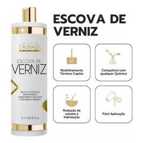 A Escova de Verniz possui fórmula rica em óleo de Ojon e blends com ação emolientes e anti-frizz, que atuam no selamento dos cabelos proporcionando redução de volume, hidratação, liso máximo e com modo fácil e prático de aplicação.