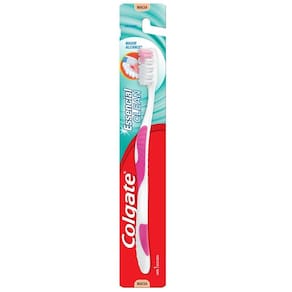 A Escova de dente Colgate Essencial Clean possui ponta limpadora e cerdas retas, que promovem uma limpeza completa até os últimos dentes.