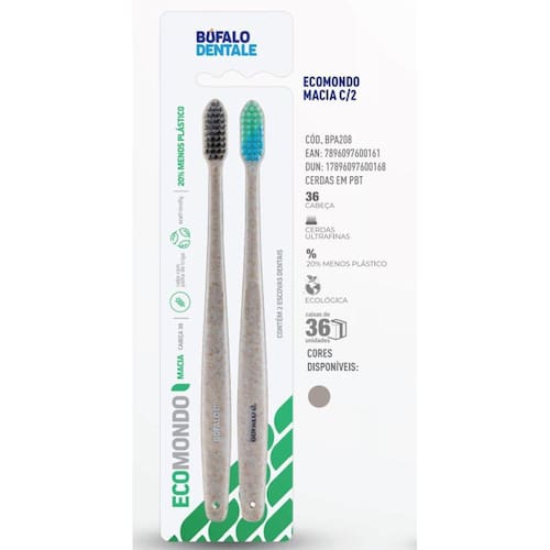 A Escova Dental Ecomondo Macia da Búfalo foi desenvolvida com a tecnologia de ponta - A escova promove uma limpeza profunda e delicada. Feita para promover os cuidados essenciais da sua saúde bucal. Para um cuidado ideal, utilize-a sempre após as refeições e antes de dormir. Apresentação: Embalagem econômica com 2 unidades da Escova Dental Ecomondo Macia Búfalo.