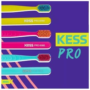Devido a quantidade e a espessura das cerdas, as escovas da linha Kess Pro atingem áreas inacessíveis às escovas comuns. As cerdas especiais ainda conseguem neutralizar a força excessiva durante a escovação, agredindo menos as gengivas.