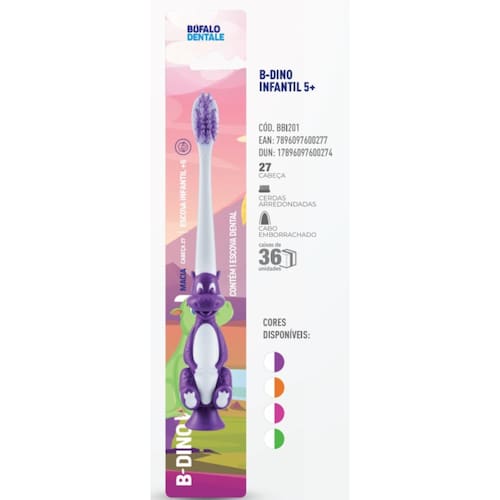 A Escova Dental Infantil Dino da Bfalo foi desenvolvida com a tecnologia de ponta - A escova promove uma limpeza profunda e delicada. Feita para promover os cuidados essenciais da sade bucal do seu filho. Indicada para crianas maiores de 5 anos. Para um cuidado ideal, utilize-a sempre aps as refeies e antes de dormir. Apresentao: Embalagem contendo 01 unidade da Escova Dental Infantil Dino Bfalo.