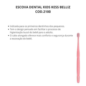 Com cabeça pequena e cerdas extra macias que são gentis e delicadas com a gengiva das crianças, a Escova Kess Dentinho conta com design especial para auxiliar os adultos na hora de escovar os dentes dos pequenos. O cabo alongado oferece mais conforto e segurança durante a escovação do bebê. Além de contar com um porta escova!