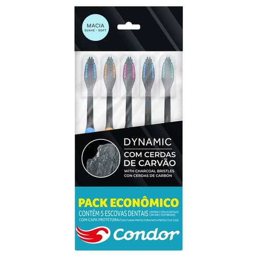 A Escova Dental Macia Condor Dynamic possui cerdas frontais mais altas que alcançam e limpam os dentes lá do fundo.