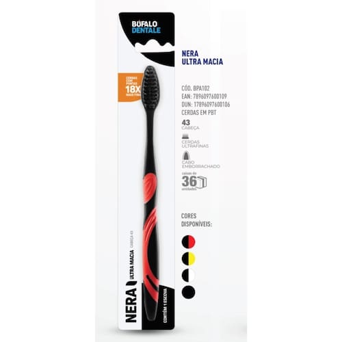 A Escova Dental Nera Ultra Macia da Búfalo foi desenvolvida com a tecnologia de ponta - A escova promove uma limpeza profunda e delicada. Feita para promover os cuidados essenciais da sua saúde bucal. Para um cuidado ideal, utilize-a sempre após as refeições e antes de dormir.