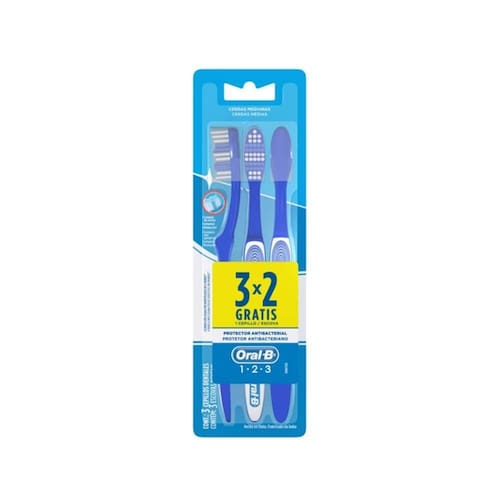 Descrição: oral b 123 cerdas de pontas arredondadas. Suas cerdas em forma de z - onduladas limpam entre os dentes, enquanto as pontas arredondadas são gentis com a gengiva. Ação/ativos: oral b 123 limpa entre os dentes, enquanto suas cerdas são delicadas com as gengivas. Inclui um prático protetor higiênico para cerdas. Modo de usar: 1- escove as superfícies voltadas para a bochecha dos dentes superiores e, depois, dos inferiores. 2- escove as superfícies internas dos dentes superiores e, depois, dos inferiores. 3- em seguida, escove as superfícies de mastigação. 4- para ter hálito puro, escove também a língua, local onde muitas bactérias ficam alojadas. Este anúncio contém: 01 oral b 123 escova dental c/3 Ean: 7500435014359