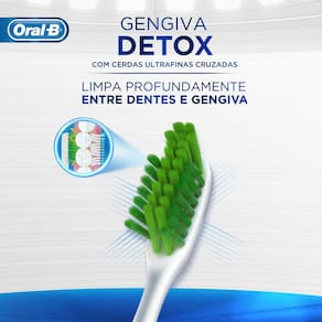 A Escova Dental Oral B Gengiva Detox promove uma higienização bucal de alta qualidade, removendo todos os resíduos prejudiciais a saúde da boca. Com suas cerdas ultra macias e micro-divididas com 6300 pontas proporciona uma escovação perfeita com maior suavidade e alcance de todos os dentes, seu cabo ergonomicamente projetado proporciona um maior conforto e controle durante a escovação. Além de possuir uma cabeça de alta precisão para remover as placas em áreas de difícil alcance, é ideal para remoção dos resíduos, deixando a sua boca limpa e protegida de germes e bactérias que causam o mau hálito e problemas na gengiva.