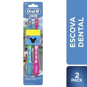Oral-B está comprometida com a saúde dos seus filhos e por isso desenvolve produtos inovadores que dentistas em todo o mundo confiam. A escova Mickey conta com: - Cerdas macias e côncavas, concebidas para envolver e limpar gentilmente os dentes; - Ajuda as crianças na aprendizagem da escovação; - Cabo com apoio para manter a escova estável ao apoiá-la; - Cerdas desenhadas para ajudar a limpar os lugares de difícil acesso; - As cerdas azuis Indicator descolorem até a metade, mostrando o momento certo de substituir a escova.