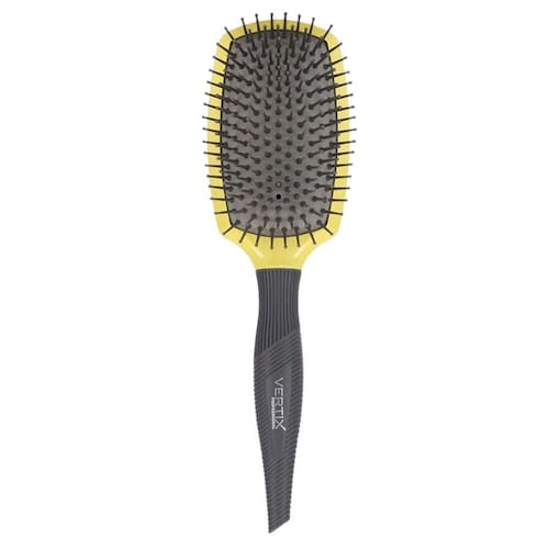 A Escova Lime Green Mid Raquete foi projetada com cerdas de ponta arredondada que deslizam suavemente pelos fios, reduzem o risco de danos e desconforto, minimizando a quebra e o desconforto no couro cabeludo.
