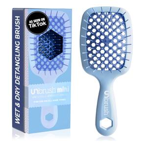 - Versátil em cabelos secos e molhados: feita para todos os tipos de cabelo, de finos e lisos a grossos e encaracolados, a escova de cabelo pequena UnBrush torna o desembaraçamento fácil e indolor, mesmo se o cabelo estiver molhado ou seco.