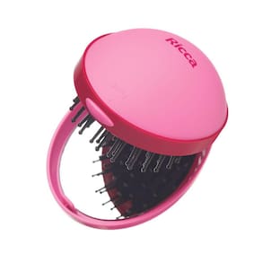A Escova Dobrável com Espelho possui de um lado base almofadada, cerdas de nylon com pontas protetoras que massageiam o couro cabeludo, e que proporciona uma escovação muito mais confortável e do outro lado possui um mini espelho.