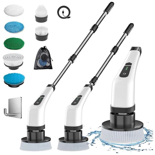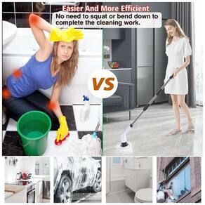 Design de lavadora sem fio, liberação de ombro Economia de energia para limpar toda a bagunça com lavadora de rotação elétrica de comprimento escalável, mais portátil e mais rápida para limpar banheiro, banheira, chuveiro, bancada, fogão, pia, vidro, azulejo, banheira e assim por diante . Este é um bom ajudante para a limpeza. Facilite a limpeza Com 2 opções de velocidade 1 velocidade 400r, min2 velocidade 300r, min. A lavadora elétrica produz uma força poderosa para ajudar a limpar manchas e manchas sujas, cuidar de suas mãos e de sua casa. Bateria de longa duração Alimentado por bateria recarregável de 2500mAh, carregamento rápido em 3 horas, pode ser continuamente por cerca de 90 minutos após ser totalmente carregado, o suficiente para uma limpeza diária. Tudo em um purificador, cabeças de escova substituíveis Inclui uma variedade de cabeças de escova e esfregões para várias áreas diferentes O esfregão é adequado para piso e carro Escova chata grande própria para limpeza de azulejos, fornos e fogões Escova plana pequena perfeita para mesas, cadeiras e armários A escova de cone é ótima para limpar o peitoril da janela e lugares apertados. O uso direcionado economiza sua energia