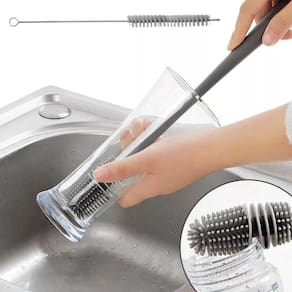 São ideais para limpeza interna das garrafas, jarras e mamadeiras que tenham a boca estreita, pois as cerdas da escova alcançam onde sua mão não alcança e tira toda sujeira sem riscar o produto e sem deixar resíduos.