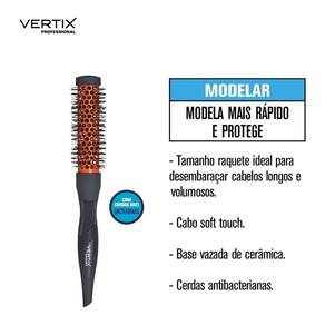 Escova de cabelo com base térmica de cerâmica ideal para modelar e criar cachos em cabelos curtos e médios e cerdas de nylon resistentes ao calor incorporadas com íons de prata que bloqueiam e eliminam a presença de bactérias.