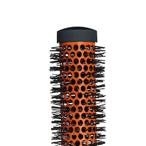 Escova de cabelo com base térmica de cerâmica ideal para modelar e criar cachos em cabelos curtos e médios e cerdas de nylon resistentes ao calor incorporadas com íons de prata que bloqueiam e eliminam a presença de bactérias.