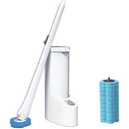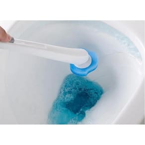 Agora, você pode realizar a limpeza do vaso sanitário de forma rápida e fácil, sem precisar tocar nas sujeiras. Basta utilizar a escova com as esponjas de refil, que já vêm com o líquido de descontaminação, para garantir uma limpeza eficiente. E quando a esponja estiver suja, basta pressionar o botão no cabo para descartá-la.