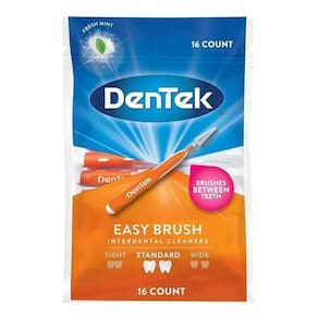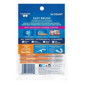 A escova interdental DenTek Easy Brush Standard facilita o uso do fio dental e a limpeza dos espaços mais difíceis de alcançar da boca. As nossas são as únicas escovas interdentais do mercado com um revestimento avançado de flúor. Escova cônica durável limpa pontos apertados e é ótima para aparelhos O fio flexível permite que as cerdas dobrem para melhor acesso A alça flexível mantém a posição quando dobrada O sabor mentolado deixa sua boca fresca Revestimento avançado de flúor para uma limpeza profunda entre os dentes Contém 16 Unidades Dimensões: 14x2x10 cm