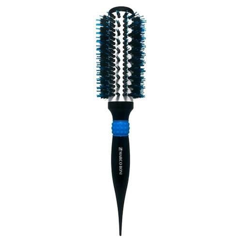 Escova Profissional Azul 25mm Ref. 7382 - Marco Boni - A Escova Profissional Azul da Marco Boni possuem cerdas de dupla altura, com as tufas retas sendo ideal para secagem e escovação dos fios. Seu formato cilíndrico e diâmetro de 25mm, permite que em cabelos de tamanho médio, corra de maneira prática e fácil. Seu cabo emborrachado com separador de mechas, proporciona melhor agilidade em seu manuseio e melhor repartição dos cabelos. - Modo de Uso: Deslize a escova suavemente entre os fios, desembaraçando as mechas e deixando os fios alinhados. - Embalagem: 1 Escova Profissional