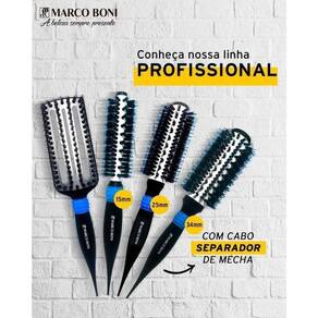 Escova Marco Boni Profissional Azul 25mm 7382 Escova Profissional Azul 25mm Ref. 7382 - Marco Boni - A Escova Profissional Azul da Marco Boni possuem cerdas de dupla altura, com as tufas retas sendo ideal para secagem e escovação dos fios. Seu formato cilíndrico e diâmetro de 25mm, permite que em cabelos de tamanho médio, corra de maneira prática e fácil. Seu cabo emborrachado com separador de mechas, proporciona melhor agilidade em seu manuseio e melhor repartição dos cabelos. - Modo de Uso: Deslize a escova suavemente entre os fios, desembaraçando as mechas e deixando os fios alinhados. - Embalagem: 1 Escova Profissional