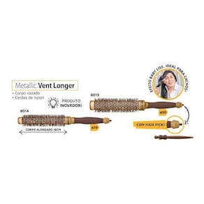Escova Marco Boni Profissional Metálica Vazada Longer 39mm 8014 Marco Boni Escova de Cabelo Profissional Metálica Vazada Longer - 8014 ? Corpo Vazado ? Cerdas de Nylon: ideal para acabamentos, finalização e modelagem ? Cabo Antideslizante ? Com Hair Pick: que auxilia na separação de mechas ? Corpo alongado 160mm ? Tamanho: 39mm de diâmetro - Encaminhamos de acordo com a Cor disponível em nosso estoque! - Thermal Metallic: corpo revestido em alumínio que auxilia na absorção e propagação do calor do secador