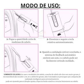 ------------------ PERGUNTAS FREQUENTES ------------------ O modelador de cachos é fácil de usar para iniciantes R: Sim, o modelador de cachos é fácil de usar, mesmo para iniciantes. O display LCD fornece instruções claras e a temperatura pode ser facilmente ajustada para garantir que os contornos perfeitos.
