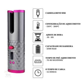 Escova Modeladora De Cachos Ondulador Profissional Sem Fio Cor: Rosa Claro com Rose O modelador de cachos que apresentamos é tudo o que você precisa para ter cabelos incríveis em qualquer lugar. Com seu carregamento bivolt, você pode usar em qualquer lugar do mundo sem preocupações. Além disso, sua função de bateria sem fio permite que você use sem precisar se preocupar com a falta de tomada.