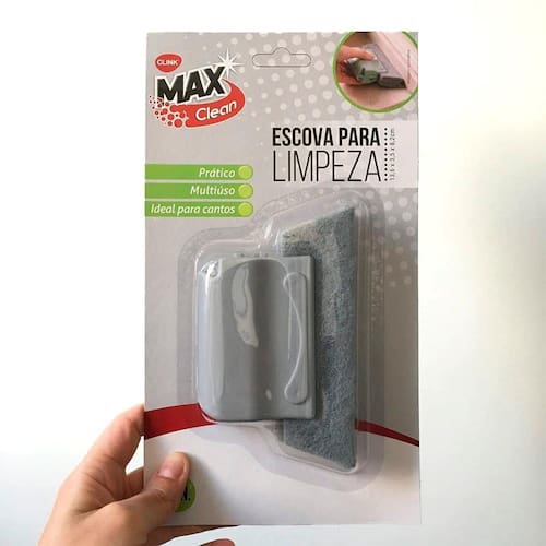 Feito em microfibras a escova para limpeza é ideal para limpar trilhos de janelas, persianas e cantos difíceis de alcançar, com seu pegador em plástico evita contato com a sujeira e produtos de limpeza tornando a utilização mais confortável e prática na hora de usar;