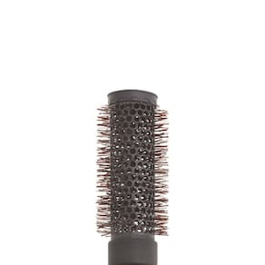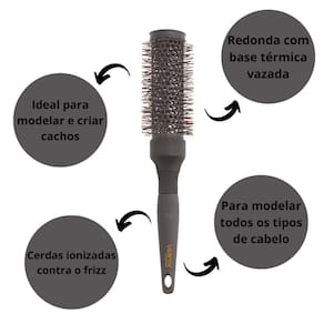 Escova térmica de cerâmica ideal para modelar e criar cachos em cabelos muito longos. Cerdas ionizadas contra o frizz. Escova de cabelo redonda com base térmica vazada de cerâmica e cerdas de nylon ionizadas tamanho médio.