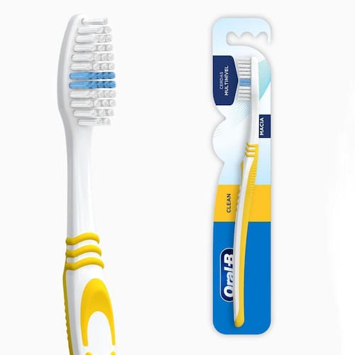 A escova Oral-B Classic além de possuir cerdas de nylon, contém cerdas com formato concavo que permitem uma limpeza mais efetiva.