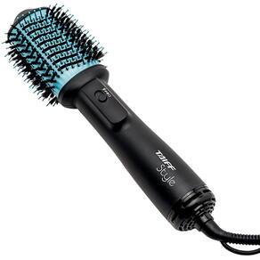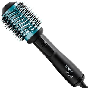 Ela seca, alisa, modela e dá volume. Suas cerdas laterais de dupla altura tracionam os fios, resultando em um efeito de brilho e polimento.