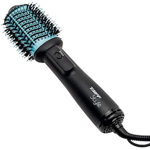 Ela seca, alisa, modela e dá volume. Suas cerdas laterais de dupla altura tracionam os fios, resultando em um efeito de brilho e polimento.