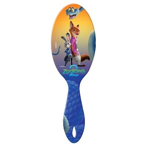 A Escova para Cabelo Oval Azul Zootopia 2 Condor possui base almofadada e pinos arredondados, proporcionando desembaraço suave sem puxar os fios, enquanto massageia delicadamente o couro cabeludo.
