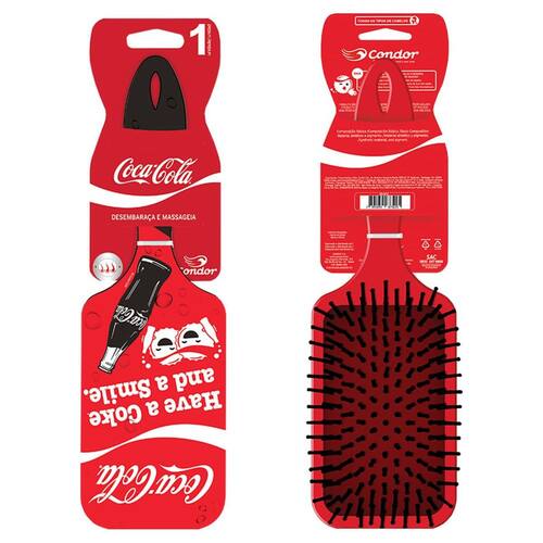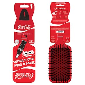 Condor e Coca-cola se juntaram para atualizar as definições de fashion da sua rotina de cuidados diários! A escova oval possui duas estampas atemporais super divertidas, que combinam tudo que o mundo Pop tem de melhor com a praticidade de uma escova almofada com pinos arredondados, que não machucam e massageam o couro cabeludo, facilitando a escovação. Seu formato oval é ideal para levar na bolsa e manter os cabelos maravilhosos em todos os lugares.