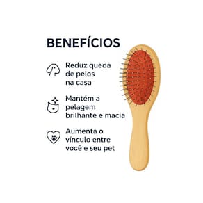 A Escova de Madeira HomePet é ideal para manter a pelagem do seu pet sempre bonita, saudável e sem nós. Indicada para cães e gatos de pelo médio, possui cabo anatômico em madeira e pinos metálicos com pontas arredondadas que não machucam a pele do animal.