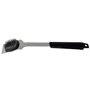 INFORMAÇÕES GERAIS DA ESCOVA PARA GRELHAS TRAMONTINA EM AÇO INOX COM RASPADOR - Escova com estrutura e cerdas de aço inox. - Cabo de polipropileno com maior resistência e durabilidade.