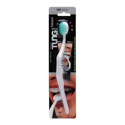 Encontre Escova para Limpeza da língua Tung Brush na Drogaria Araujo. As cerdas penetram-nas fendas da língua, onde as bactérias causadoras de odor se escondem, eliminando o mau hálito. Confira!