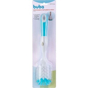 A escova para Mamadeira e Bico 2 em 1 da Buba é ideal para lavar as garrafinhas e mamadeiras, pois ela atinge áreas difíceis de serem alcançadas. Ela acompanha limpador de bicos, que pode ser acessado desrosqueando o cabo da escova. As cerdas resistentes e macias foram desenvolvidas para promover a higiene sem danificar o produto.