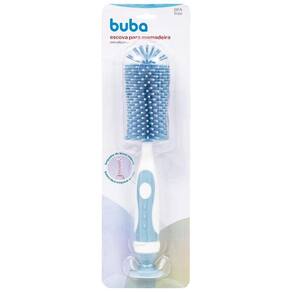 A Escova para Mamadeira E Bico da Buba é um acessório para limpeza 2 em 1, ideal para lavar garrafas e mamadeiras, pois atinge áreas difíceis de serem alcançadas. A escova possui cerdas macias e resistentes possibilitando uma perfeita higienização sem danificar o produto, sendo uma escova prática e eficiente para bico destacável que encaixa dentro do cabo da escova maior feita em silicone super macio, com um cabo antiderrapante e uma ventosa para mantem a escova em pé e evita que estrague ao apoiá-la na superfície.