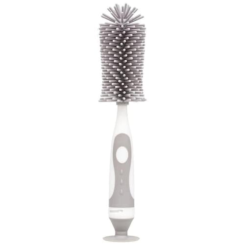 A Escova para Mamadeira E Bico da Buba é um acessório para limpeza 2 em 1, ideal para lavar garrafas e mamadeiras, pois atinge áreas difíceis de serem alcançadas. A escova possui cerdas macias e resistentes possibilitando uma perfeita higienização sem danificar o produto, sendo uma escova prática e eficiente para bico destacável que encaixa dentro do cabo da escova maior feita em silicone super macio, com um cabo antiderrapante e uma ventosa para mantem a escova em pé e evita que estrague ao apoiá-la na superfície.
