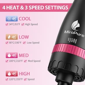 Escova de secador de cabelo MiroPure Escova de secador de cabelo em um, secador de cabelo 4 em 1 e volumizador com 4 configurações de temperatura de velocidade, escova de ar quente para todos os estilos de cabelo e secagem rápida, rosa vermelha - [4 CONFIGURAÇÕES DE AQUECIMENTO] A escova do secador de cabelo tem 4 configurações de temperatura e 3 de velocidade, adequadas para todos os tipos de cabelo, e você pode ajustar a temperatura de forma flexível para atender às suas necessidades de estilo de cabelo. Fresco para realçar o brilho e fixar seu estilo, baixo para cabelos finos/finos, médio para cabelos ondulados/encaracolados, alto para cabelos grossos/grossos — [uma ferramenta, vários estilos] Secador de cabelo 4 em 1 com várias funções, que é a combinação perfeita de secador, pente, modelador de cabelo e alisador de cabelo. Adequada para cabelos secos e molhados, ajudando a reduzir os danos ao cabelo - [EXPERIÊNCIA ÚNICA DE SALÃO] A escova de cabelo de ar quente com saídas de ar inovadoras de 360° e motor potente de 1200 W permite que você complete os lindos resultados de beleza do salão de beleza com eficiência em menos tempo. A ventilação exclusiva de 360° oferece uma área de secagem ao redor 50% maior para secagem máxima com menos frizz - [CERDAS 3D E DESIGN OVAL] Nossa escova para secador de cabelo foi projetada com pinos de nylon e cerdas tufadas, ela pode evitar emaranhados no cabelo, melhorar a suavidade, o volume e o brilho. O exclusivo cano de escova de formato oval foi projetado para dar volume ao cabelo e um estilo mais eficaz - [FÁCIL DE USAR] Nossa escova de ar quente pesa apenas 0,71 libras, mais leve do que outros secadores de cabelo. Equipado com plugue ACLI e cabo giratório de 360°, garante a segurança do usuário e é fácil de usar