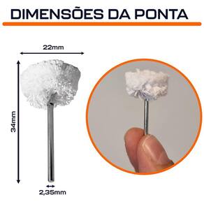 Escova de Polimento Haste 2,35mm Cotton para Polir com Micro Retíficas e Mini Lixadeiras Dremax - Marca: Dremax - Modelo: PP010 - Diâmetro 22mm - Diâmetro da haste: 2,35mm - Uso em micro retíficas e mini lixadeiras de qualquer marca com pinça de 2,35mm - Roda 100% algodão natural - Indicada para polimento de joias, metais ferrosos ou não ferrosos, aço, aço inoxidável, alumínio, bronze, cobre, latão e plástico em geral - Proporciona maior rendimento durante o trabalho - Recomenda-se a utilização com pasta para polimento - Garantia: 90 dias contra defeitos de fabricação A DREMAX é a primeira e única marca brasileira dedicada exclusivamente às micro retíficas, acessórios e acoplamentos para esta indispensável ferramenta. Seja para trabalhos de precisão, artesanato, modelagem ou reparos, a DREMAX tem o produto certo para você. Marca: Dremax