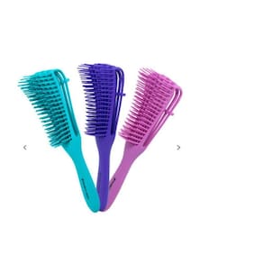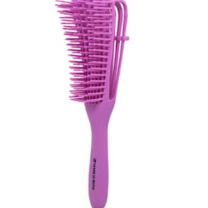 - Pode ser usada com cabelos secos ou molhados; - Por ser flexível e respeitar a curvatura dos cachos, reduz a quebra dos cabelos; - Fácil de limpar; - Para cabelos cacheados ou crespos; - Corpo vazado e ventilado que permite o fluxo de ar e água; - Possui suporte para controlar a distancia entre as cerdas; - Cores Diversas.