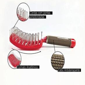 Características: Forma curvada Uso profissional ou em home care Cerdas de nylon Massageia o couro cabeludo Durável Resistente ao calor