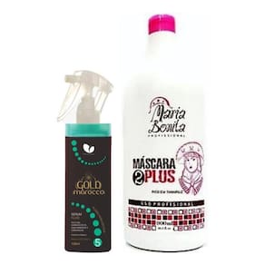Progressiva Maria Bonita - Transformação Capilar Desfrute de cabelos deslumbrantes com a Progressiva Maria Bonita, uma solução completa para reduzir o frizz, alisar e proporcionar um brilho luminoso aos seus fios. Tratamento Plus - Brilho e Fortalecimento Equilibra o pH dos fios, reconstruindo suas fibras essenciais. Devolve brilho, maciez e força aos cabelos, mantendo a cutícula alinhada. Máscara Plus - Hidratação Profunda e Volume Controlado Trata cabelos porosos e sem vida desde a primeira aplicação. Reduz o volume, proporcionando efeito nutri-disciplinante e formando um filme protetor. Enriquecido com Tamariliz, um mousse natural derivado do fruto do Tamarindo, que revitaliza os fios. MODO DE USO: Após lavar os cabelos com Shampoo, aplique o Tratamento Plus em mechas, deixando agir por alguns minutos. Finalize com escova e prancha para resultados deslumbrantes. Spray Gold Marocco Manga Rosa 120 ml - O Segredo para Cabelos Deslumbrantes Brilho, hidratação, maciez, nutrição e reconstrução, tudo em um só produto. Fragrância perfumada que deixa os fios com um aroma delicioso. Fórmula livre de crueldade, dermatologicamente testada e hipoalergênica, garantindo segurança e bem-estar. Apresentação em spray para uma aplicação fácil e resultados incríveis. Transforme seus cabelos com a Progressiva Maria Bonita e o Spray Gold Marocco Manga Rosa - uma combinação irresistível para cabelos exuberantes e saudáveis. Adquira já o seu e sinta a diferença REGULAMENTO ANVISA 25351357288202418 Marca: Não Informado