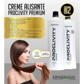 Creme alisante proclivity premiumOs cabelos lisos estão em alta e a busca pelo liso perfeito se torna cada vez mais constantes em nossa vida. Os tratamentos de relaxamento e alisamento capilar são processos mais solicitados e as técnicas utilizadas são as mais variadas. Pensando nisso a originale cosméticos desenvolveu um produto não só para alisar. Porque melhor que obter cabelos lisos é obter cabelos lisos, reestruturados e realmente saudáveisShampoo proclivity premium: o shampoo proclivity foi elaborado com aminoácidos da seda, seu princípio ativo é rico em glicina, alamina e sericina que tem por finalidade devolver a umidade natural e flexibilidade dos cabelos.Creme alisante proclivity premium: o creme alisante proclivity é um tratamento eficiente, livre de formol. Promove efeito liso aos cabelos, além de hidratar intensamente dispensando o relaxamento químico. É indicado para todos tipos de cabelos. O creme alisante proclivity premium é totalmente livre de químicas alcalinas, formol e carbocisteina. Seu princípio ativo é o ácido hialurônico, contém em sua composição 22 aminoácidos que são responsáveis pela produção de queratina, e contém o dmae que é o grande reconstrutor das pontes hídricas.Hoje nossa alisamento proclivity premium ele é registrado na anvisa como grau .Você sabe o que é grau 2 0,01% das escovas progressivas no brasil estão nesta categoria.São obrigatório vários testes de segurança.Produtos com registro na anvisa, não poderão ser alterados pelos fabricantes sem autorização.Produtos para criança estão nesta categoria.Só recebem o grau 2 após testes de comprovação do uso de ingredientes autorizados pela anvisa, não prejudiciais à saúde dos consumidores.O seu passo a passo é um pouco diferenciado.Acompanhe1- lave o cabelo com shampoo hidratante proclivity. não é antirresiduo 2- com auxílio de uma toalha retire o excesso de umidade.3- inicie a aplicação mecha por mecha com um pincel mantendo 1 centímetro de distância do couro cabeludo. Está aplicação se inicia na nuca e segue até a parte frontal da cabeça em mechas bem finas.4- distribua creme alisante proclivity premium premium de forma homogenia, certificando que todas as mechas estão sendo aplicadas. Não deixe nenhuma parte do cabelo sem o produto.5- após a aplicação do produto inicie a contagem do tempo conforme a tabela de orientação capilar.6-terminado o tempo de pausa, enxague muito bem com água corrente, retirando todo o produto dos cabelos. Creme alisante proclivity premium não precisa de neutralizante, sendo retirado somente com bastante água. Não deixe resíduo de produto nos fios. Retire o excesso da água com a toalha escove o cabelo com auxílio de escova e secador.7- após escovação dividir o cabelo em quatro partes. Passar a prancha na temperatura de 220°c em mechas muito finas de 7 a 10 vezes para ocorrer a nova forma do cabelo transformado.8- o tratamento cosmético está finalizado. Caso queira pode lavar os cabelos ao final do processo.Cabelos finos 15 a 20 minutosCabelos médios 20 a 40 minutosCabelos grossos 40 a 60 minutosANVISAProcesso nº 25351.265931/2015-50 Marca: Originale Cosmetico