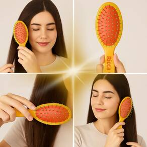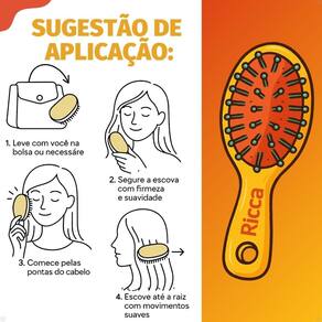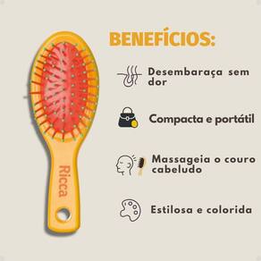 Beleza que cuida: mais do que uma escova, um carinho diário para os seus fios A Escova Colors Mini Ricca vai muito além de um acessório de beleza: ela é uma verdadeira aliada no seu autocuidado. Suas cerdas com pontas protetoras foram projetadas para deslizar suavemente pelos cabelos, reduzindo a quebra e eliminando os nós sem agredir os fios ou causar desconforto.