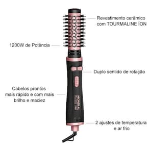 Este é um anúncio da MAIKSHOP Antes de finalizar a compra, pedimos queSe atente as seguintes informações:- Postagem rápida No máximo no próximo dia útilEscova Rotativa ElétricaMondial ERB-01Cabelos prontos mais rápido, com efeito duradouroE com mais brilho, todos os dias, conte com a Escova Rotativa Black Rose daMondial tem o revestimento cerâmico com tourmaline íon, que proporciona umCabelo com saudáveis, brilhante e sem frizz.Duplo sentido de rotação gira 360 nos 2 sentidosPermitindo uma modelagem perfeita, além de finalizar pontas e franjas, paraDentro ou para fora.2 ajustes de temperatura e ar frio - 2 opções deTemperatura proporciona melhorCaracterísticas do Produto:Revestimento cerâmico com tourmaline íon: emiteÍons que selam as cutículas dos fios, eliminando o arrepiado e proporcionandoMuito mais brilho e maciez.Potência de 1200W: potência de secador com aPraticidade de uma escova.Duplo sentido de rotação: modela o cabelo paraDentro ou para fora.2 ajustes de temperatura e ar frio: proporcionamMelhor desempenho durante a modelagem.Fácil de usar: selecione a temperatura desejada eEscove os cabelos da raiz até as pontas acionando o botão de rotação paraModelar.Especificações Técnicas:Modelo: ERB-01Cores predominantes: preto e golden roseVoltagem: bivolt com chave seletoraPotência: 1200WNíveis de temperaturas: 2Funções: modelarTecnologia emite íons : simRevestimento: cerâmico com tourmalineConteúdo da embalagem:1 Escova rotativa1 Manual de instruçõesGarantia: 12 meses pelo fabricante.---------- INFORMAÇÕES IMPORTANTES ----------- Os pedidos serão enviados em até 1 dia útil após APROVADOS, salvo exceçõesComo instabilidades em sistemas fiscais e logísticos, grande fluxo de pedidosOcasionados por promoções, épocas comemorativas do ano e/ou lançamentos deProdutos, ou devido a atrasos ocasionados por empresas terceirizadas transportadoras, plataformas on-line, fornecedores etc. . Manteremos vocêInformado em qualquer caso de atraso na postagem de sua encomenda.